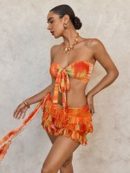 סיטונאי שלוש חתיכות בגד ים עלים הדפסה ביקיני בגדי ים לנשים