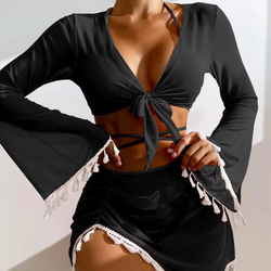 ビーチドレス100% ポリエステルクロシェ女性用ロングビキニカバーアップ2ピースセット