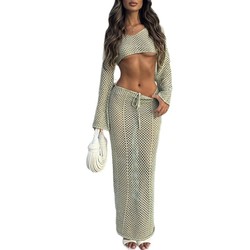 2025 yaz yeni Bikini mayo ve plaj kapak-up Hollow örgü kazak bir adet kadın örtbas elbise